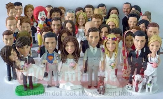GalleryWowMiniMe 100% handmade custom cake toppers / custom 3D figurines useing the finest Polymer Clay - the color is the clay so the final product is actually brighter, true 3D likeness and higher quality.